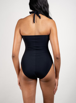 The pinnacle of figure-accentuating beauty, this halter one-piece with a unique twist front is prime…